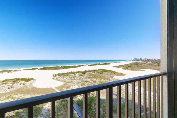 Direct Gulf Front Southern Exposure corner unit with TWO BALCONIES! UNOBSTRUCTED Breathtaking Million Dollar Views & Magnificent Sunsets! Located in Lighthouse Towers, Clearwater Beach ~
