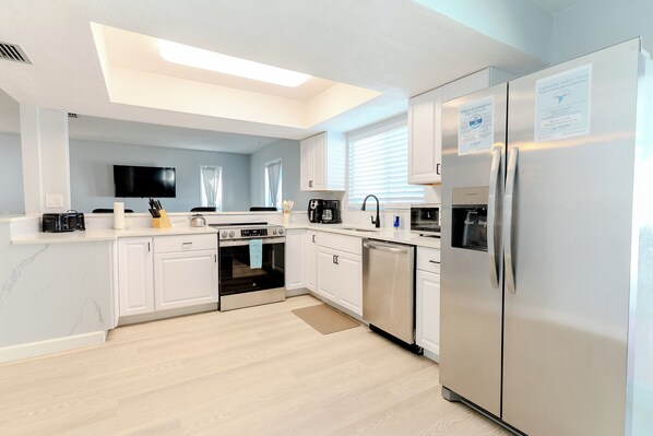 Welcome to Paradise by the Gulf! To help kick off your stay, we've provided a complimentary starter kit for your convenience. The kit includes: Coffee Black tea Sugar Salt & Pepper Toilet paper Kitchen paper Dishwasher pods Laundry detergent
