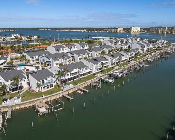The property is a very large condo complex and this condo is at the extreme West end (closest to the beach). When you enter the complex through the gated drive the Clubhouse will be on your left. The condo is to your right, all the way to the end. Next to the clubhouse is the first pool, with the second one a short walk to the east, both are heated and open from 8:30am to 10:00pm. There is a sidewalk next to the Intracoastal that follows the entire complex and leads to fishing piers and beautiful water views. From here you can see boats passing, and the Madeira Beach (Tom Stuart) Causeway with drawbridge. All along the sidewalk are concrete picnic tables with umbrellas and benches for anyone to use. It's not uncommon to see dolphins, manatees, and fish jumping during your walk.