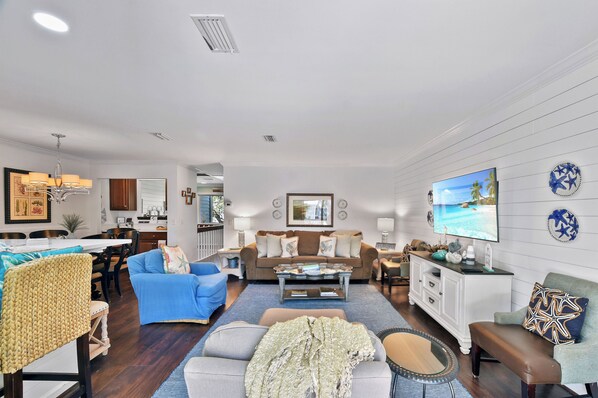 There are chairs for 4 on the downstairs patio and a deck for two perched on the balcony above. The “HG Coastal” residents share a huge fire pit and backyard grill. Hang with your old friends and make plenty of new ones!