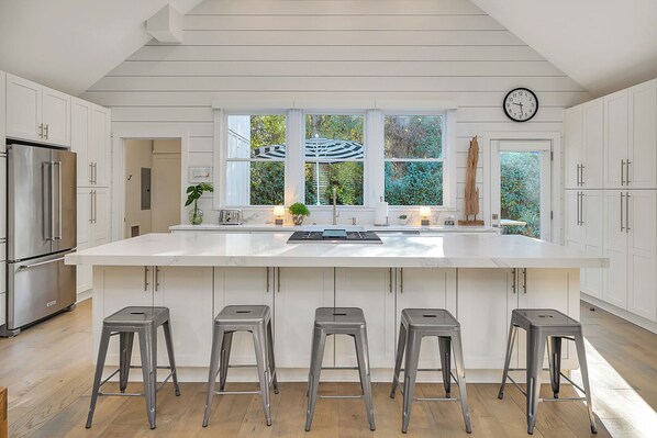 Chef’s kitchen with high-end appliances and oversized island