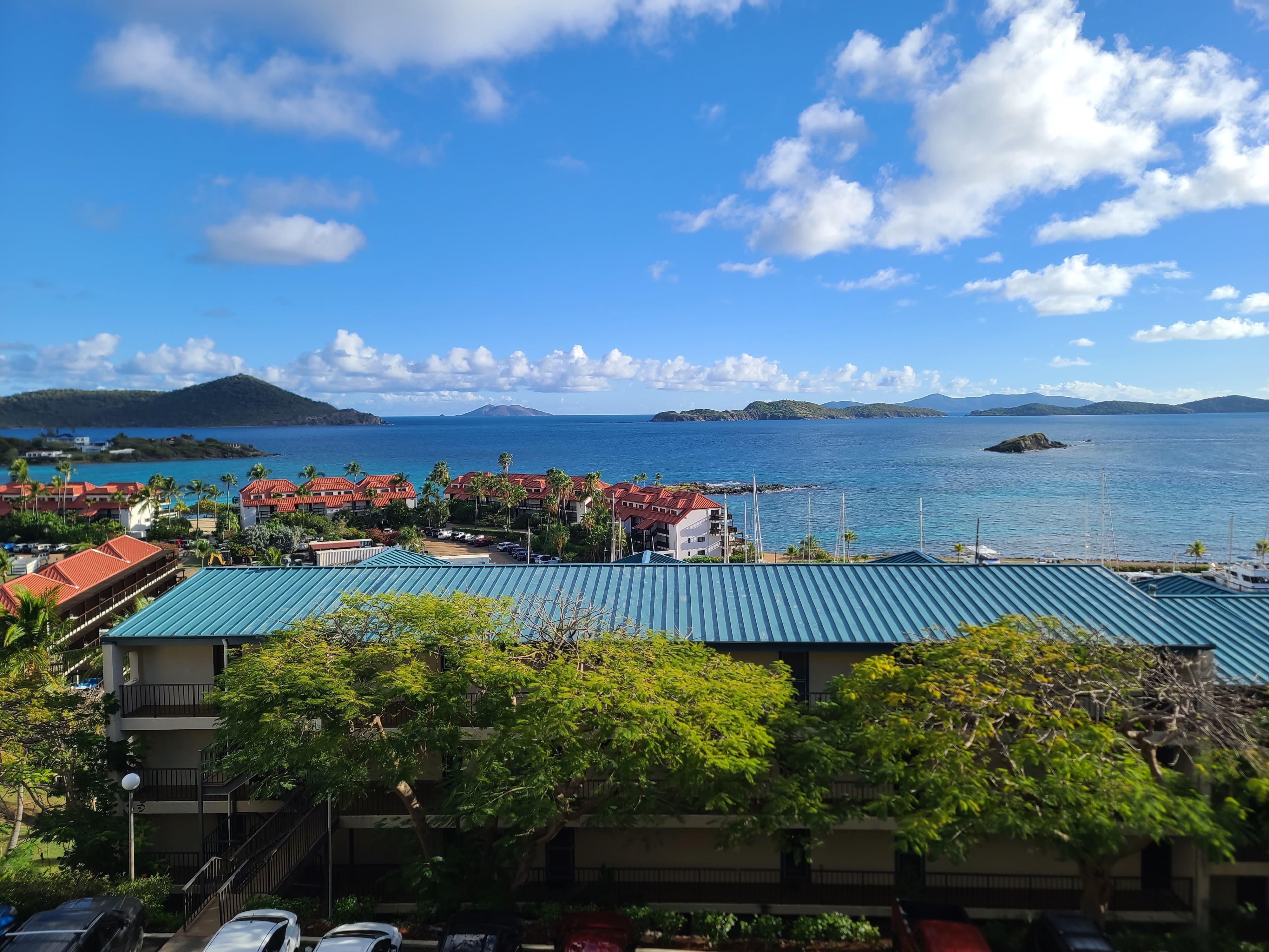 Ikke se lenger! Nyrenovert Ocean Blu ligger i Barbados-bygningen i Sapphire Village med den beste utsikten på eiendommen, enkel tilgang og basseng bare noen få skritt unna. Denne private luftkondisjonerte romslige 1-roms villa tilbyr kule hvite flislagte gulv, moderne fullt utstyrt kjøkken med granitt benkeplater, rustfritt hvitevarer og glass mosaikk tilbake sprut. Alt du trenger for å forberede måltider mens du er på ferie er gitt. Det er to romslige spisestue områder; en inne ved siden av kjøkkenet og den andre på din private flislagt havutsikt balkong! Dette blir ditt favorittsted dag og natt som du drømmer om dagen og ser på havet og båtene som seiler av. Stuen er romslig og vakkert innredet med en svensk utformet seksjonssofa med en rulle ut (trille) stil full størrelse gjesteseng med komfortabel madrass. Flatskjerm-TV, DVD-spiller, Internett-TV og Wifi er inkludert. En mp-3 / iPhone-kontakt for stereoanlegget er praktisk for din personlige musikkspilleliste. Vegg av glass og skyve glassdør gir den fengslende ned-øya utsikt over St. Johns og de myriade britiske jomfruøyene utover og tillater de tropiske brisen inn i rommet.