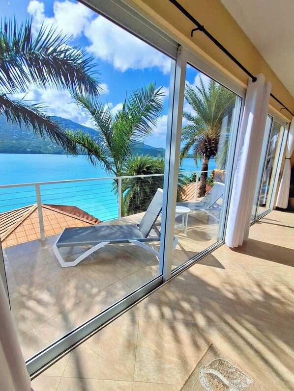 Sailfish Villa is a beautiful property with waterfront access and spectacular views. We were two couples so there was plenty of room. The bedrooms are basically identical (one has two queen beds, one has a king bed) both with a TV and couch so you can have your privacy. There is a staircase to the waterfront were the access is a little rocky but a short swim/walk in the water to a nice sandy spot. But just being in the water was beautiful. We have been to St Thomas before so we didn’t need much from the manager but check in process was simple and the villa was ready with AC’s on and bottled water in the fridge. We enjoyed our stay and hope to return. FYI the villa has multiple stairs. It’s built into the hillside so make sure you are fine with that.