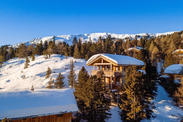 Velkommen til din alpine helligdom – en romslig hytte på 130 m² i massivt tre designet for å romme opptil 13 gjester i ultimat komfort og stil. Plassert i en rolig furuskog på 1800 meter over havet, tilbyr dette sjarmerende feriehuset en perfekt blanding av rustikk eleganse og moderne bekvemmeligheter, noe som gjør det til et ideelt tilfluktssted for familier og grupper som søker både avslapning og eventyr. Nyt pittoresk utsikt og frisk fjelluft fra balkongen, et perfekt sted å slappe av etter en dag med utforsking. Etter en spennende dag i bakken eller fotturer gjennom skogen, kan du berolige musklene i den infrarøde badstuen eller nyte en avslappende dukkert i boblebadet. Hyttens førsteklasses beliggenhet i furuskogen gjør den ideell for skiturer, fotturer og fotturer, med skianlegget i nærheten. Hytta har fire velutstyrte soverom: to med dobbeltsenger, ett med to køyesenger og ett med dobbeltseng, enkeltseng og køyeseng. Dette mangfoldige arrangementet sikrer fleksible sovemuligheter for større grupper. Med tre moderne bad, hver utstyrt med dusj, er det god plass for alle å forfriske og slappe av. Det åpne kjøkkenet er fullt utstyrt for å imøtekomme alle dine kulinariske behov, med bestikk, kokekar, keramisk kokeplate, stekeovn, oppvaskmaskin og kjøleskap med fryser. Andre bekvemmeligheter inkluderer en brødrister, vannkoker og kaffemaskin. For å gjøre oppholdet ditt så smidig som mulig, vil et lite startsett med oppvaskmaskinklaffer, oppvaskmiddel, en svamp, søppelsekker, rengjøringsmidler og et kjøkkenhåndkle bli gitt ved ankomst. Hold deg tilkoblet med gratis Wi-Fi og nyt favorittprogrammene dine på satellitt-TV. Med Butler-kortet eller Butler-programmet inkludert, vil du motta personlig service for å forbedre oppholdet ditt.