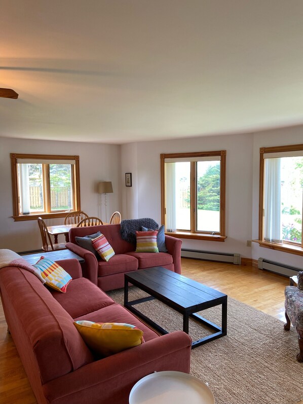 Beautiful 3-bedroom cottage on a quiet lane in Stanhope, Prince Edward Island with a beautiful view of Covehead Bay. A one minute walk to the Stanhope Golf Course. A 15 minute walk to Ross Lane beach and a short drive to Stanhope Beach, Brackley Beach, Covehead and Dalvay Beach.