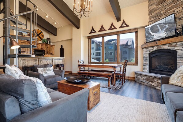 Gondola Square 35, a 2-Bedroom + Loft / 2-Bathroom condominium that boasts great valley views and offers guests unbeatable access to skiing and the Mountain Village. This warm and welcoming condo has all that you need - a well equipped kitchen, with lovely cabinetry and sleek countertops, seating at the breakfast bar for three, plus the dining table can seat six. The living area has vaulted ceilings, large windows take in the action of the Village below, the living room also has gas fireplace, flat screen TV with DVD player, and access to the deck. The primary bedroom is located on the main floor, which also has access to the deck. Spiral stairs lead to the upper level which has an open loft sleeping area, and the second bedroom. Each of the bathrooms have been nicely updated, with new vanities, tile and fixtures. Take advantage of this lovely condo and its very convenient location.
