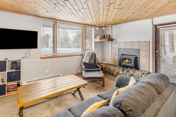 Sit out on the patio to enjoy your first cup of morning coffee. Inside, the wood-burning fireplace keeps you and your guests warm and cozy while you play a few board games at the nearby table. This home also includes a well-equipped, full kitchen with everything you need to prepare everyone's favorite recipes. For your total convenience, be sure to take advantage of the lockable ski locker, located right outside the front door.