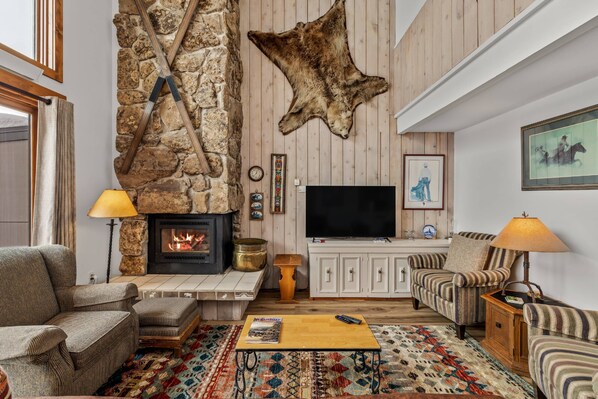 The main (middle) level has access to a deck with amazing views of the slopes and the NEW Electric Weber grill. It's perfect for relaxing with a cocktail after a great day on the mountain.