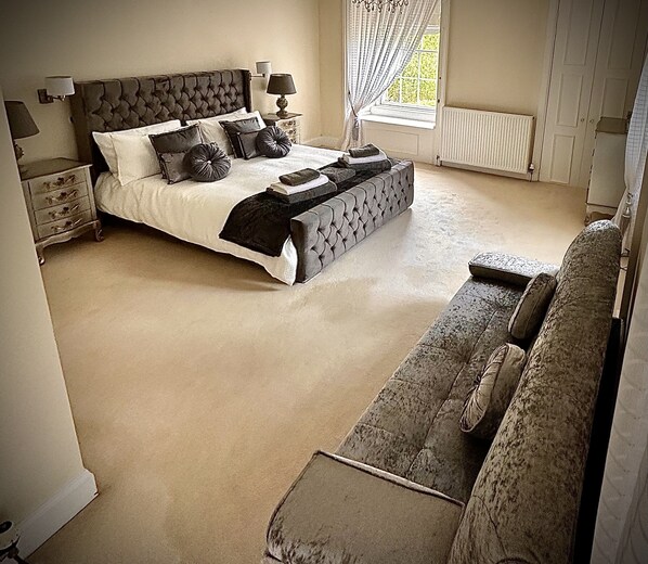 5 luxury bedrooms, large kitchen, beautiful dining room with original, stunning cupola domed ceiling. A huge lounge with twin aspect windows, original marble fireplace and ornate ceilings. Beautiful curved wall snug sitting room, and a games room with bean bags, games console and a selection of board games to keep everyone entertained. There are extensive gardens with plenty room for entertaining and relaxing. There is also a gravel driveway with parking for several cars.