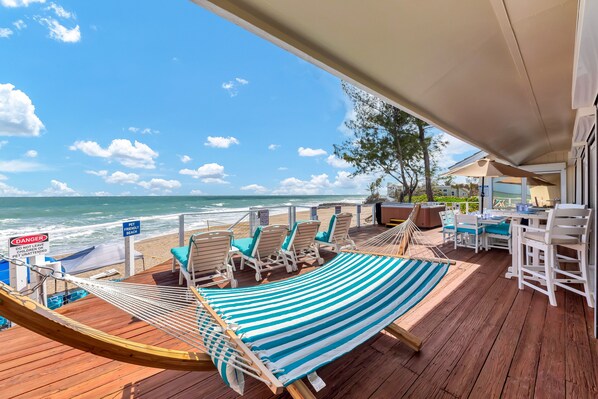 HAVE IT ALL — Live/Work/Play/Relax on your own private beach—and at your very own private luxury ocean-to-river beach property. Get away from the crowds … and get closer to those who matter the most. Less than an hour away from Palm Beach International Airport, your own 5-star oceanfront property is located in USA Today's #1 coastal small town in the USA (2024 national winner). Our town is also the national winner of the "America's Happiest Seaside City" contest (Coastal Living Magazine's Annual Award). Situated in the perfect beach town, your own beach property is a tranquil oasis yet close to shopping / restaurants / attractions. Need to connect online? Enjoy a rare luxury among vacation rentals: Gigabit-sped commercial-grade secure Wi-Fi internet so fast, you can stream 4K movies at night, and so powerful, you can work from outside, while on the beach or at the end of the dock. (Perfect for the kids' homework/homeschooling, too.)