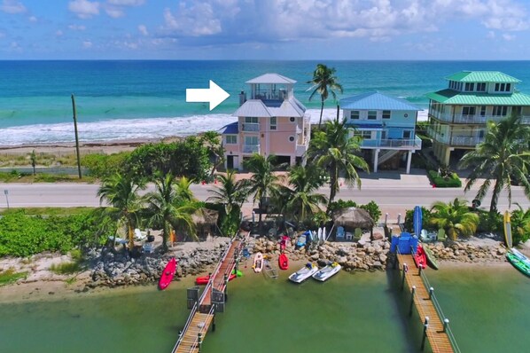 "Så bra som det blir" ligger på en privat strand i et rolig boligområde - det er ingen condos, høye stigninger eller store offentlige strender på flere kilometer. (Ingen folkemengder, bare en strand for deg selv og din gruppe). Atlanterhavet ligger rett utenfor din veranda. Og 15 skritt fra inngangsdøren er din egen 300 fots lange dype vann private dock ved Indian River, og tilbyr noe av det beste fisket i verden, og utstyrt med alle favorittvannleketøyene dine. (gratis kajakker, paddleboards, snorkelutstyr, sykler, boogie boards, fiskeutstyr, metalldetektorer og mer)
