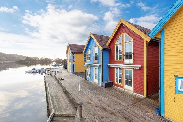Feriebolig ved vannkanten med kjøkken og balkong