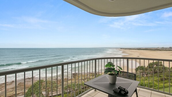 Åpne vinduene og legg deg tilbake i sengen, ta i den fantastiske havutsikten og lytt til lydene fra bølgene. Denne 3-roms enheten sitter høyt over strandpromenaden og ser utover Shipping Channel med utsikt over Moreton Island. Hoved soverommet ligger mot stranden, og gir nydelig utsikt over havet og Bribie. Dette soverommet har eget bad og har egen tilgang til balkongen der du fullstendig kan fange den magiske havutsikten.