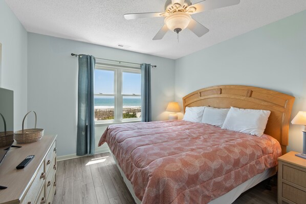 Bring the dog with you!! PET FRIENDLY!! "Close Call" is a charming and unique oceanfront retreat offering 4 bedrooms, 3 baths and breathtaking views of the sparkling Atlantic ocean! Relax and unwind as you watch the waves of the ocean roll in, while rocking away the day on the covered porch. The private beach boardwalk is just steps away from the warm sand and gentle ocean breezes. After your day on the beach, rinse away the sand in the enclosed outdoor shower, complete with hot and cold water. Prepare home-cooked meals and gather together in the family-style kitchen with room for everyone around the table. With a king bed in both the first and second bedrooms, a queen bed and a single bed in both the third and fourth bedrooms, and a sofa bed (linens not provided for sofa bed), there will be enough room for the whole gang! This cozy retreat comes complete with a dishwasher, washer/dryer, icemaker, free Wi-Fi, parking underneath the house, and much more! Please note that bedroom TVs are not connected for cable viewing, they are for use with the provided DVD players.