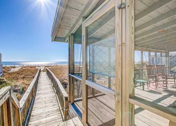 Oceanfront Screened Porch with Private Beach Boardwalk, WiFi, AC, Outdoor Shower