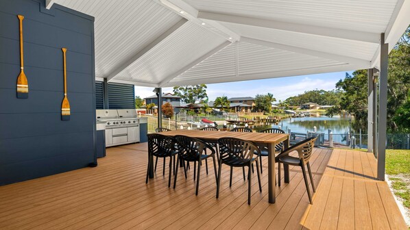 The Quay to Sussex also features an outdoor shower and toilet, a fully fenced yard area and private jetty with sink and seating.
