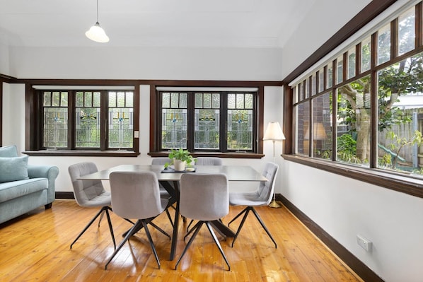 Alle gjesterommene på Avslappende opphold i nærheten av Fairlights naturskjønne steder kan skilte med goder i form av eget spiseområde i tillegg til fasiliteter som kontor og kontorstol.