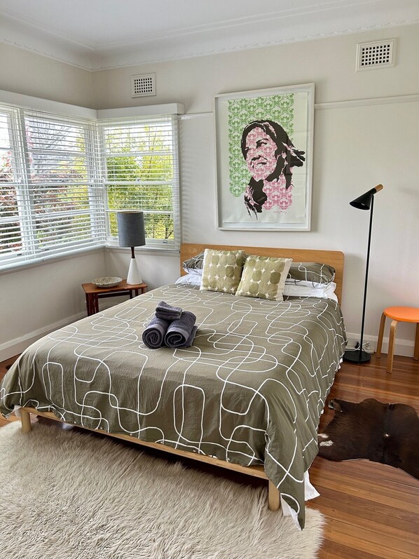 Det har polert tregulv, et restaurert kjøkken og baderom og midten av det 20. århundre Moderne detaljer og møbler. Sol fyller plassen på dagtid og en vakker 'Eco Smart' åpen peis holder det koselig om kvelden.