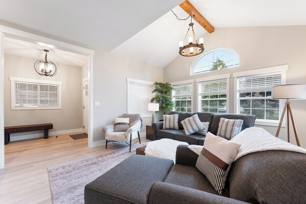 Welcome to Modern Manor, an upscale modern vacation home designed for comfort, relaxation, and connection. This beautifully appointed two-bedroom home with a spacious loft offers the perfect setting for couples, families, and small groups seeking a peaceful getaway without sacrificing convenience or style.