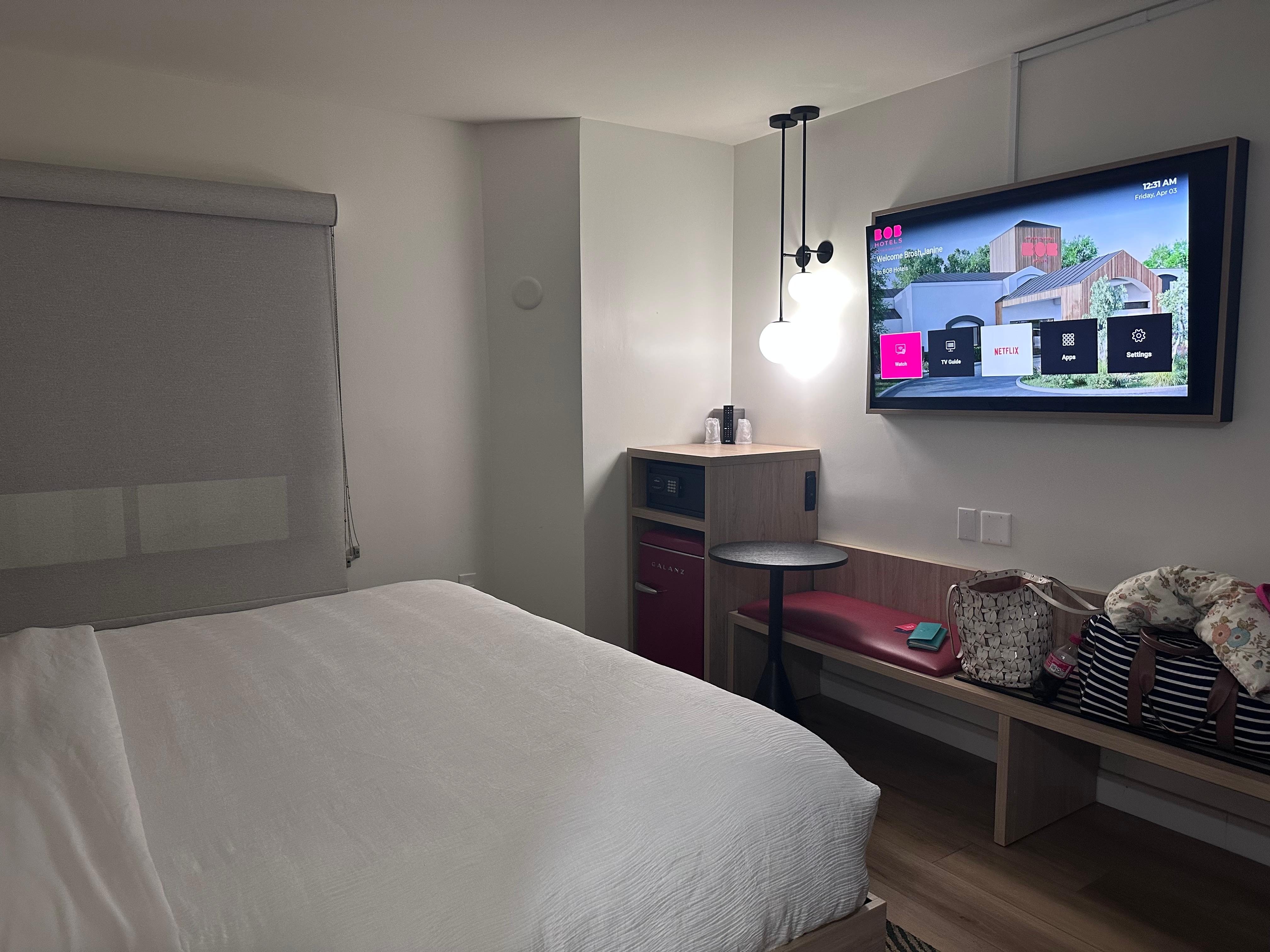 Warm welcome even though we arrived after midnight. Spotless room, super comfortable bed, refreshingly different from other chain hotels with its quirky decor.