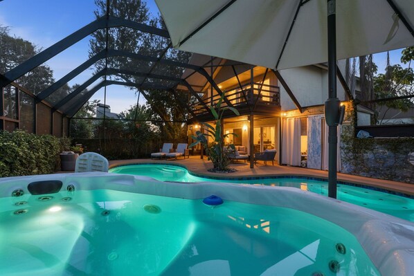 Welcome to a spacious Tampa Getaway, featuring a screened in pool and hot tub!