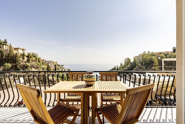 GuestHost - 68 sqm apartment for 2 people, featuring 3 balconies with a stunning sea view. Centrally located in Taormina, it offers the convenience of being close to all major attractions while remaining quiet and peaceful. Ideal for a couple seeking rel