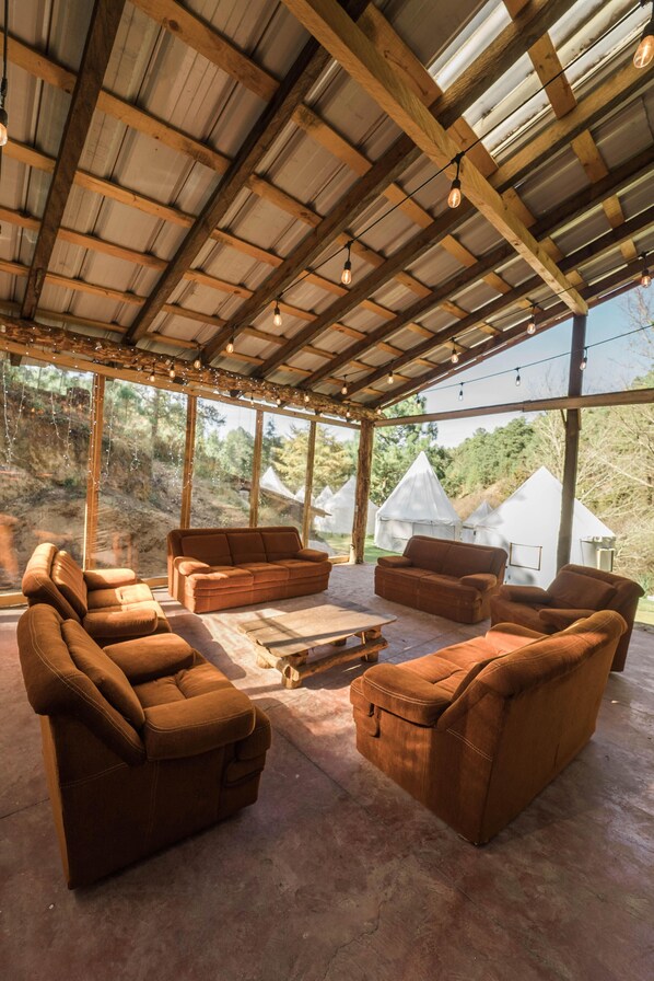 Guests have access to all the amenities inside their tent, as well as a terrace/dining area equipped with everything needed to cook and enjoy meals. Drinking water, a barbecue grill, a campfire area, and a games and entertainment room are also available.