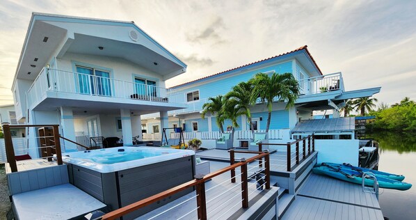 The whole family will enjoy this luxury tranquil, waterfront getaway in Tavernier with a 13 foot Hydrotherapy Swim Spa. Watch the sunrise from the balcony and explore the private pugged swimming canals using the kayaks provided. With 4 bedrooms/ 3 bathrooms, a spacious modern terrace, and a fantastic location, this tropical retreat will make your visit to the Keys unforgettable.