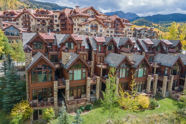 Hovedinngangen fra gateneivå fører gjestene til tredje etasje, som har et åpent kjøkken, spisestue og stue. Kjøkkenet har toppen av linjen apparater fra Wolf, Sub Zero og Asco, samt en high-end Mr. Kaffe drypp kaffetrakter. Det er et stort spisebord med plass til opptil 12 samt bar sitteplasser for fire. Salongområdet har en strålende innbydende L-formet sofa med gasspeis og fantastisk utsikt mot vest. På dette hovednivået er det også en suite med king size-seng og eget bad med glassdusj. | Hovedsoverommet har hele toppetasjen i hjemmet (femte etasje). En king size-seng venter søvnige skiben, rett etter at gjestene slapper av i den store mesteren badekar eller dampdusj. Hovedsoverommet har en flatskjerm-TV med Blu-ray-spiller i soverommet og en montert flatskjerm-TV på badet, samt en peis i soverommet og to garderobeskap, en med stappet vaskemaskin og tørketrommel. Det er også en privat uteplass med to stoler.
