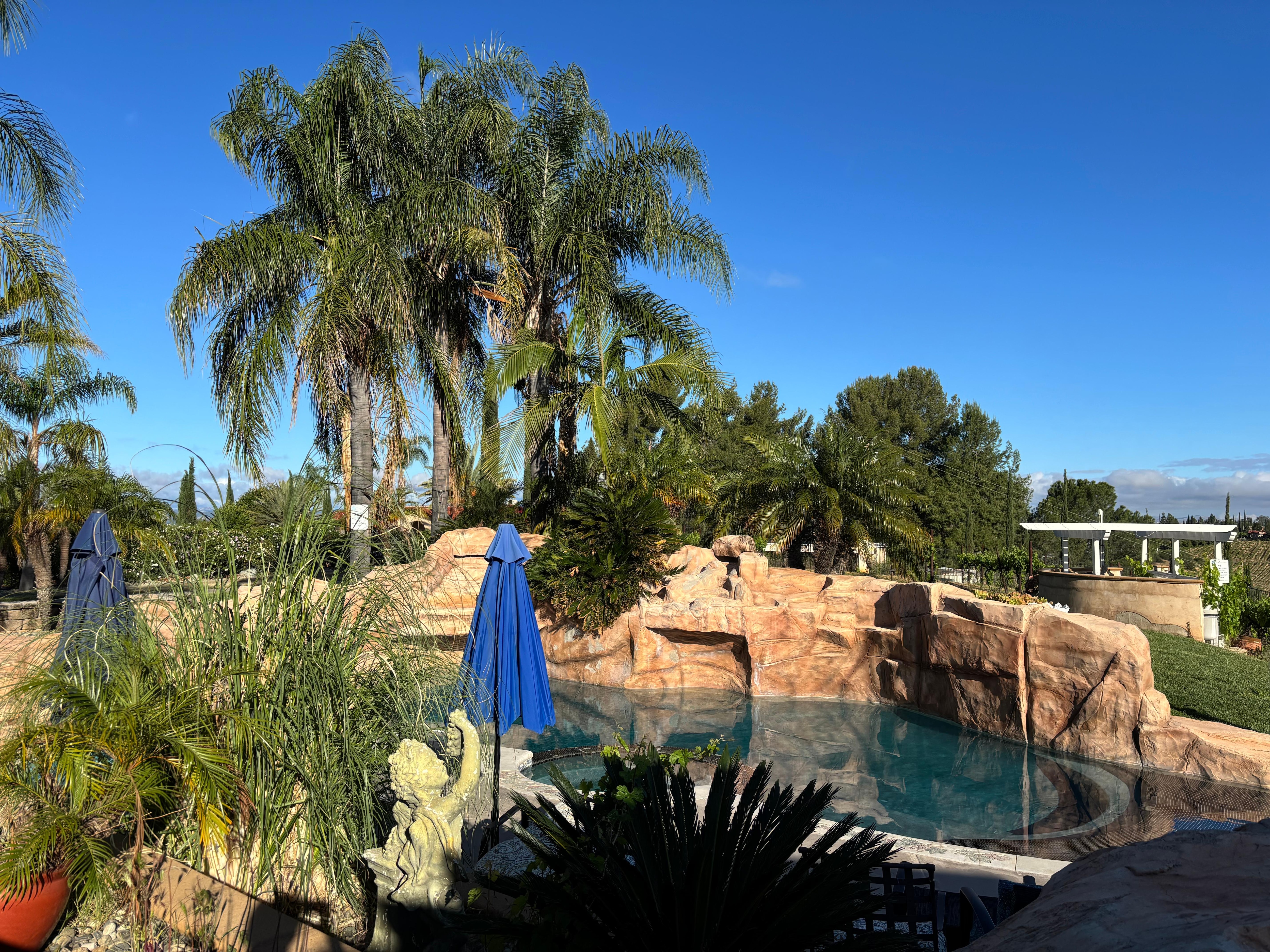 Enjoy the well-manicured yard with plenty of outdoor space for entertaining while enjoying the breathtaking views of the surrounding wine country. The beautiful back yard has a pool and spa with plenty of comfortable lounge chairs and umbrellas for shade, as well as outdoor dining areas for al fresco meals. The built in BBQ bar is perfectly placed to enjoy chatting with friends while the family frolics in the pool until dinner is served. This is an ideal spot to relax and unwind after a day of exploring the local wineries, or to entertain friends and family on warm summer evenings.