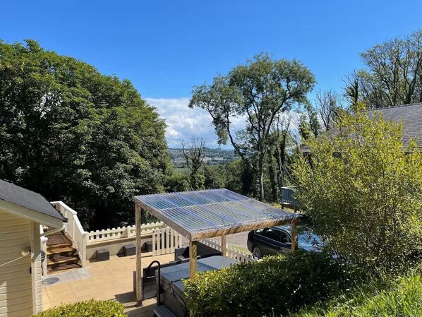 5* Woodland Lodge with covered hot tub, dog friendly, golf, close to beach