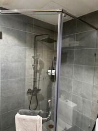 The bathroom design may not be for everyone. There’s an exposed wall and the ceiling area is also exposed, which gives it a slightly unfinished feel. Again, not a deal breaker, but something to be aware of if you prefer fully enclosed, polished finishes.
