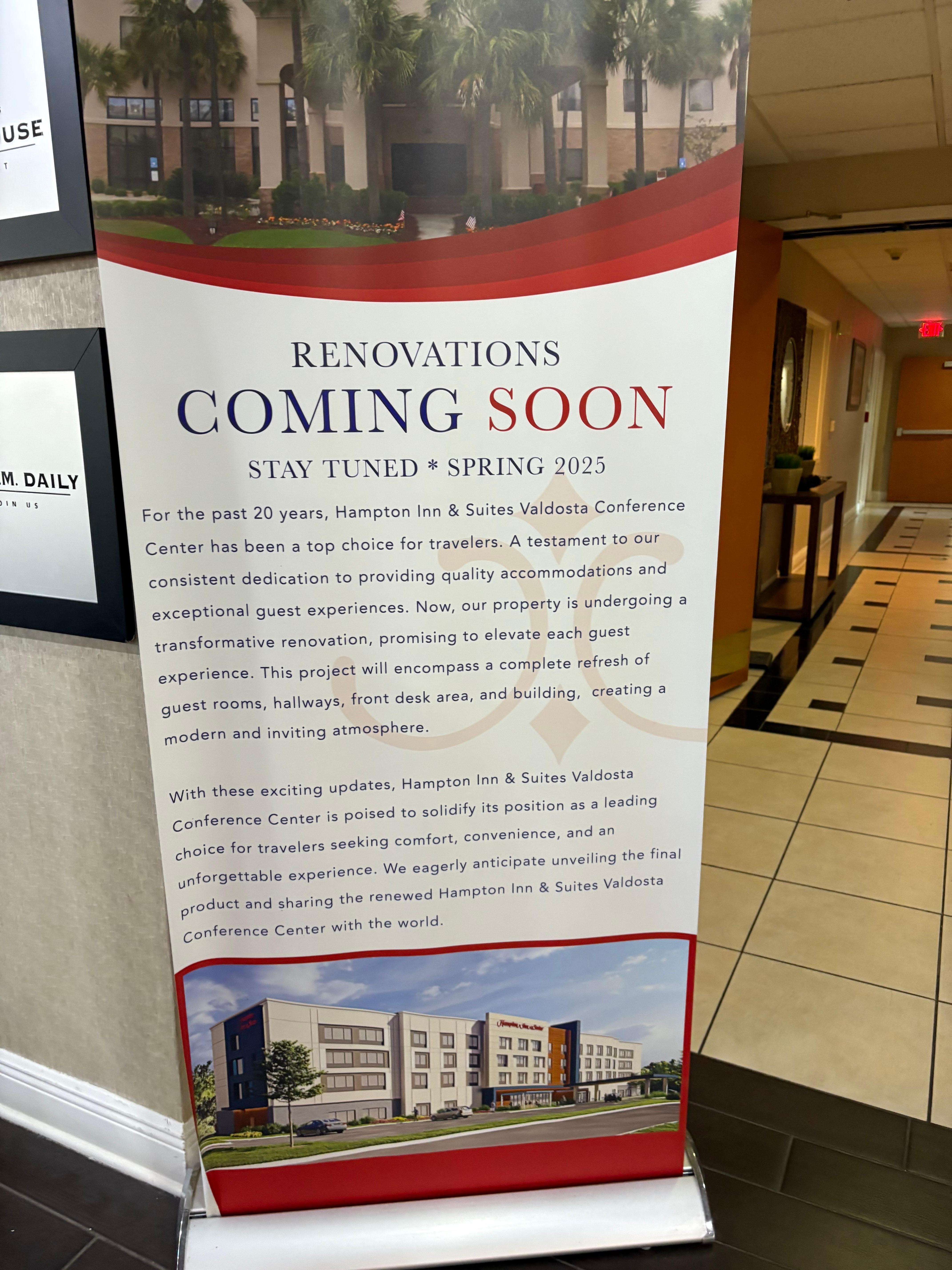 I feel a sense of embarrassment and doubt regarding the quality of Hilton after my experience at this hotel. The exterior appears neglected, with the front covered in plywood, and the overall cleanliness is lacking. While I understand that construction can lead to some minor inconveniences, it has been ongoing for over a year, and it seems there has been no effort to maintain cleanliness during this period. The entire building exhibits signs of water damage, the shower was unclean, and the room was entirely outdated. I question whether this facility would meet the Fire Marshall's standards, and it seems they are taking advantage of Georgia's lack of OSHA regulations. If I hadn't checked in after midnight for a brief rest, I would have opted to cancel my reservation. Following this experience, I decided to cancel my three additional reservations at Hilton brand hotels for the rest of our trip. If you choose to stay here, please make sure your Tetanus shot is current