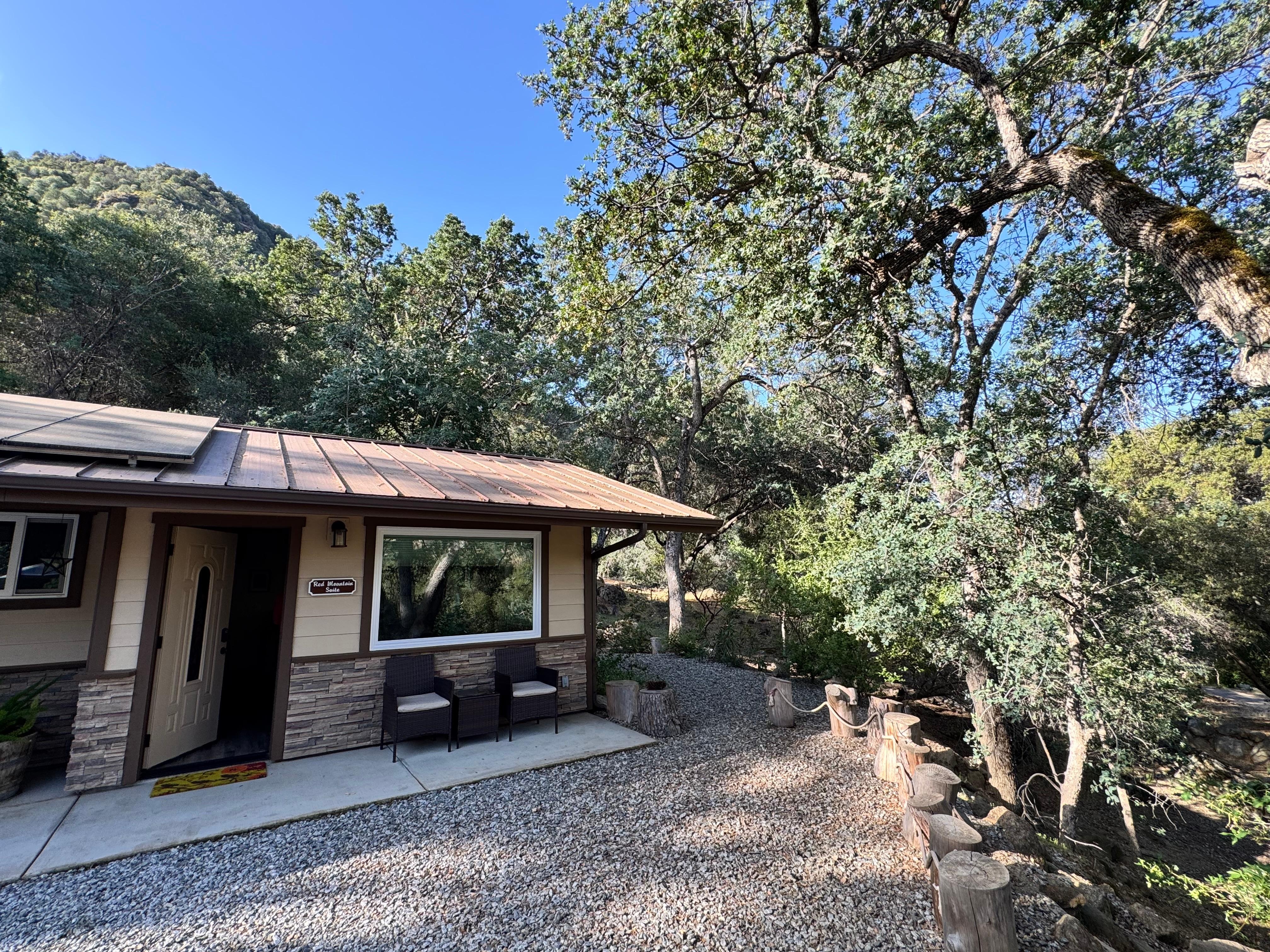 Spring has sprung and the wildflowers are blooming! Take it easy at this unique and tranquil getaway! Accommodates a maximum of 2 adult guests only. Not suitable or safe for children. No pets allowed. A perfect place to relax and unwind after exploring Sequoia National Park. Private, peaceful and quiet location nestled on the top of a mountain on a one acre parcel less than 1 mile from Sequoia National Park. The Red Mountain Suite is one of two private Suites available at the Rose Retreat. The Ash Mountain Suite is adjacent and also available for booking. Spectacular views of Ash Peak and Red Mountain. BBQ, picnic and meadow area to enjoy. We live close by and available if needed.