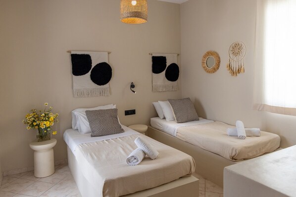 Alle gjesterommene på Atheria In Center Of Tinos With Two Single Beds kan friste med komfort i form av klimaanlegg i tillegg til fasiliteter som wi-fi (inkludert) og kontor.