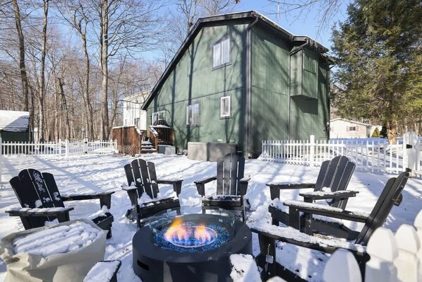 Chic, stylish, and Insta-worthy—this 3BR, 2BA getaway in the Poconos is the perfect escape. Unwind in your private hot tub, roast marshmallows by the gas firepit, or grill dinner on the propane BBQ. Located in a gated community with a fully fenced yard, it’s ideal for couples or small families looking to relax in comfort and style. Close to hiking, lakes, and ski resorts—your perfect Poconos stay starts here!