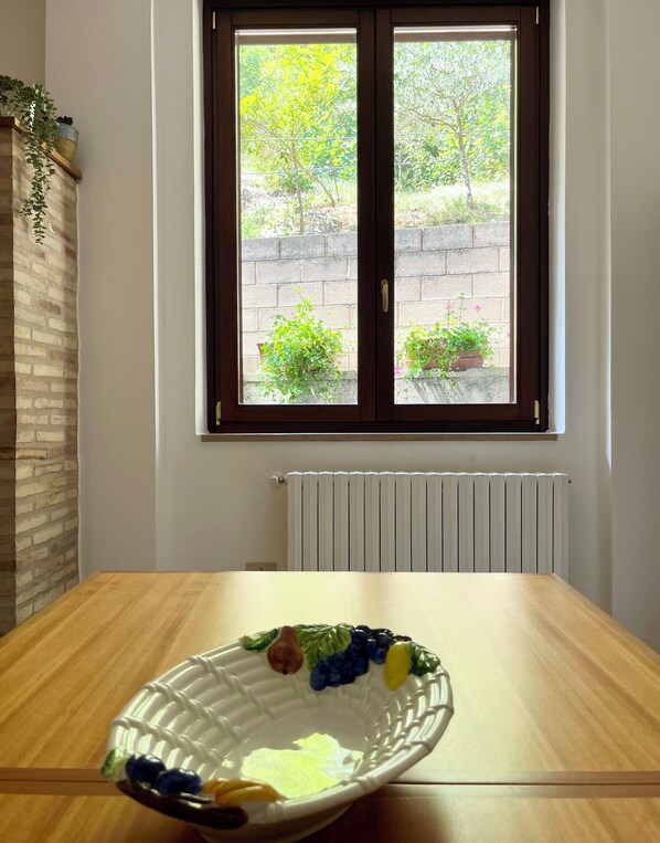 Alle gjesterommene på Lilly's Home | in the village of mosaics, between sea and mountains byr på komfort i form av eget spiseområde samt fasiliteter som spisebord.