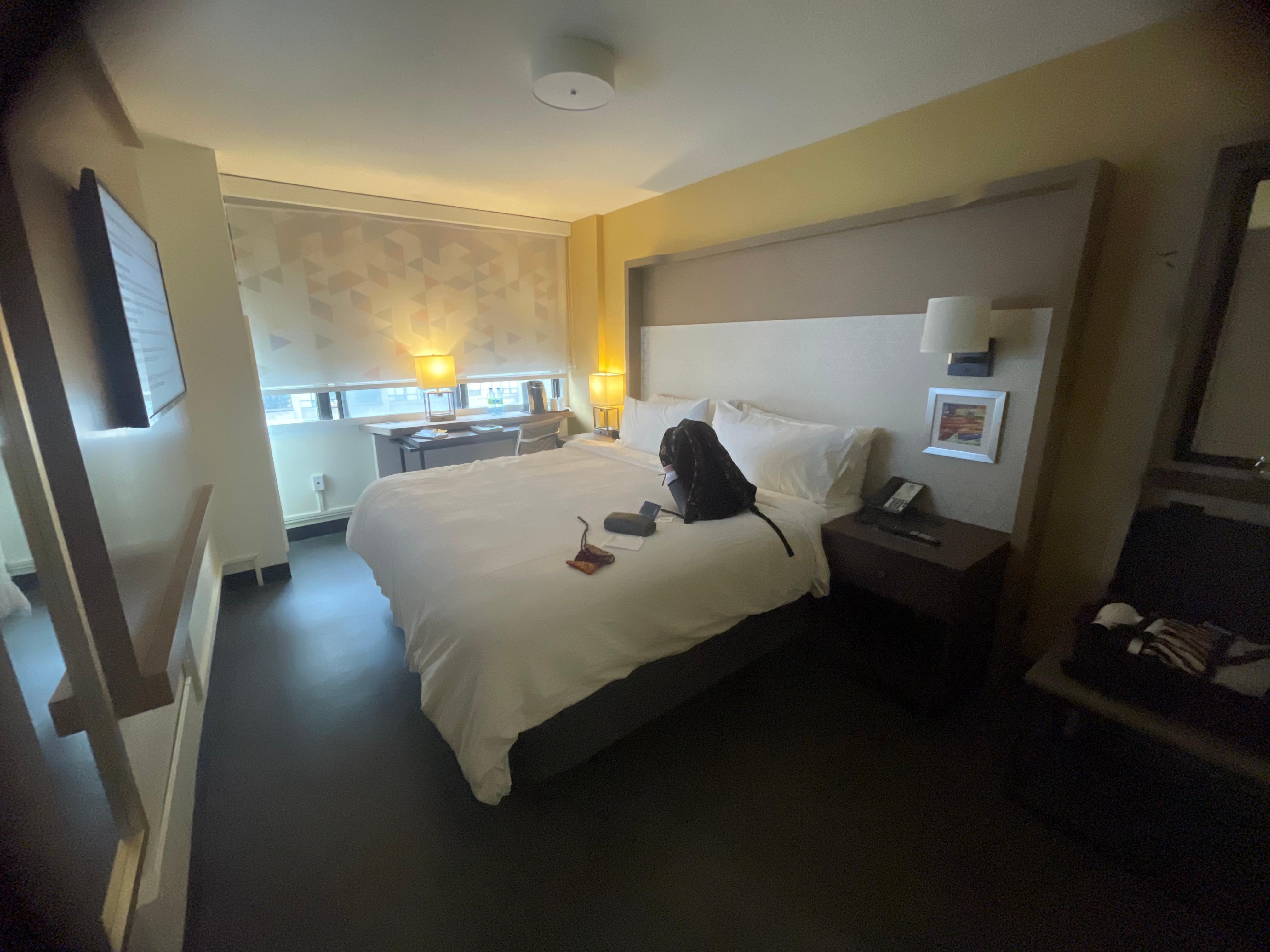The room was very well set up lots of storage. Only thing bed faced the door and you could see the light coming in from sides of door and peep hole. Checked out the new gym. You had to walk through the wet pool area to access the gym and although it was spacious it did not have a lot of equipment. Good location would definitely stay again