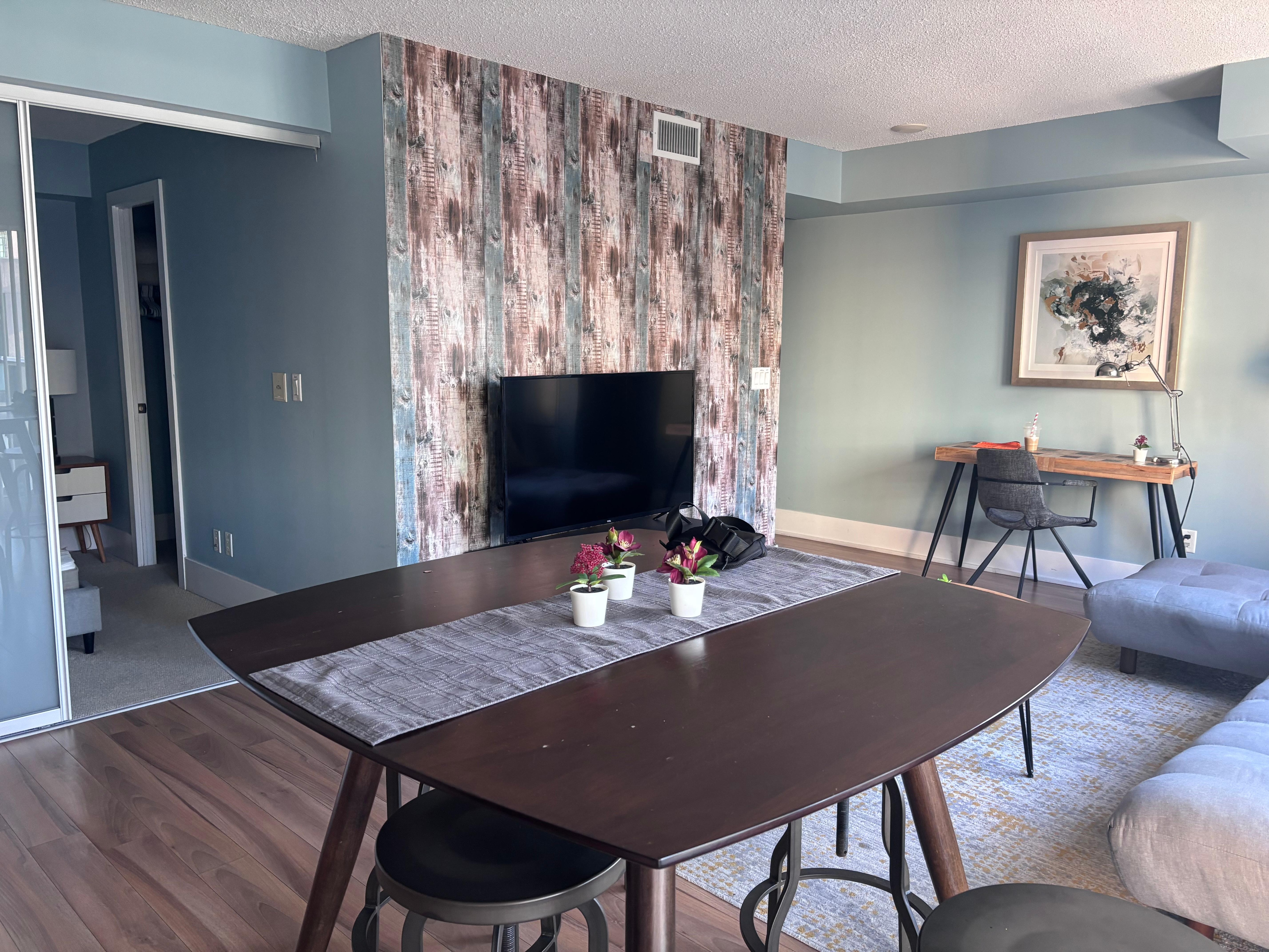 Dette leilighetshotellet i Toronto tilbyr wi-fi inkludert i prisen (hastighet: 500+ mbps (for flere enn 6 personer eller 10 enheter)). 50-tommers smart-TV inkluderer parabol-TV og Netflix. I tillegg har rommene strykejern/-brett og blendingsgardiner/gardiner.
