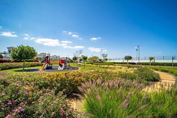 This charming 2-bedroom, 1-bathroom apartment is conveniently located close to the town centre and resort amenities. The spacious lounge and dining area open onto a terrace that overlooks the communal pools, making it ideal for families.