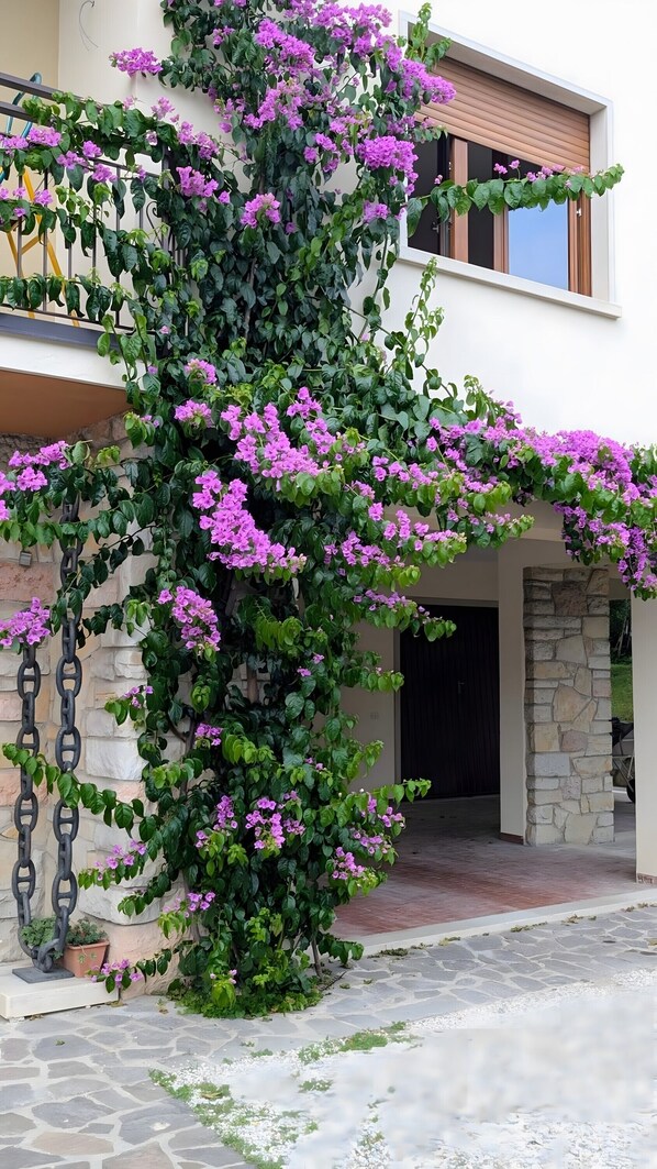 On the ground floor, guests have access to a laundry room and a storage area. The property is surrounded by an olive grove offering plenty of shade, along with ample parking.
