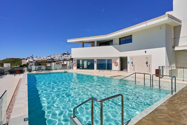 Step outside to enjoy 2 uncovered terraces, 1 covered terrace, and 1 balcony. The shared outdoor pool and children's pool are open all year round and heated in wintertime, though covers may be used during very windy and rainy conditions. Additional facilities include a shared indoor pool, shared sauna, outdoor shower, and shared gym equipment. A tennis court is located within a 15-minute walking distance.