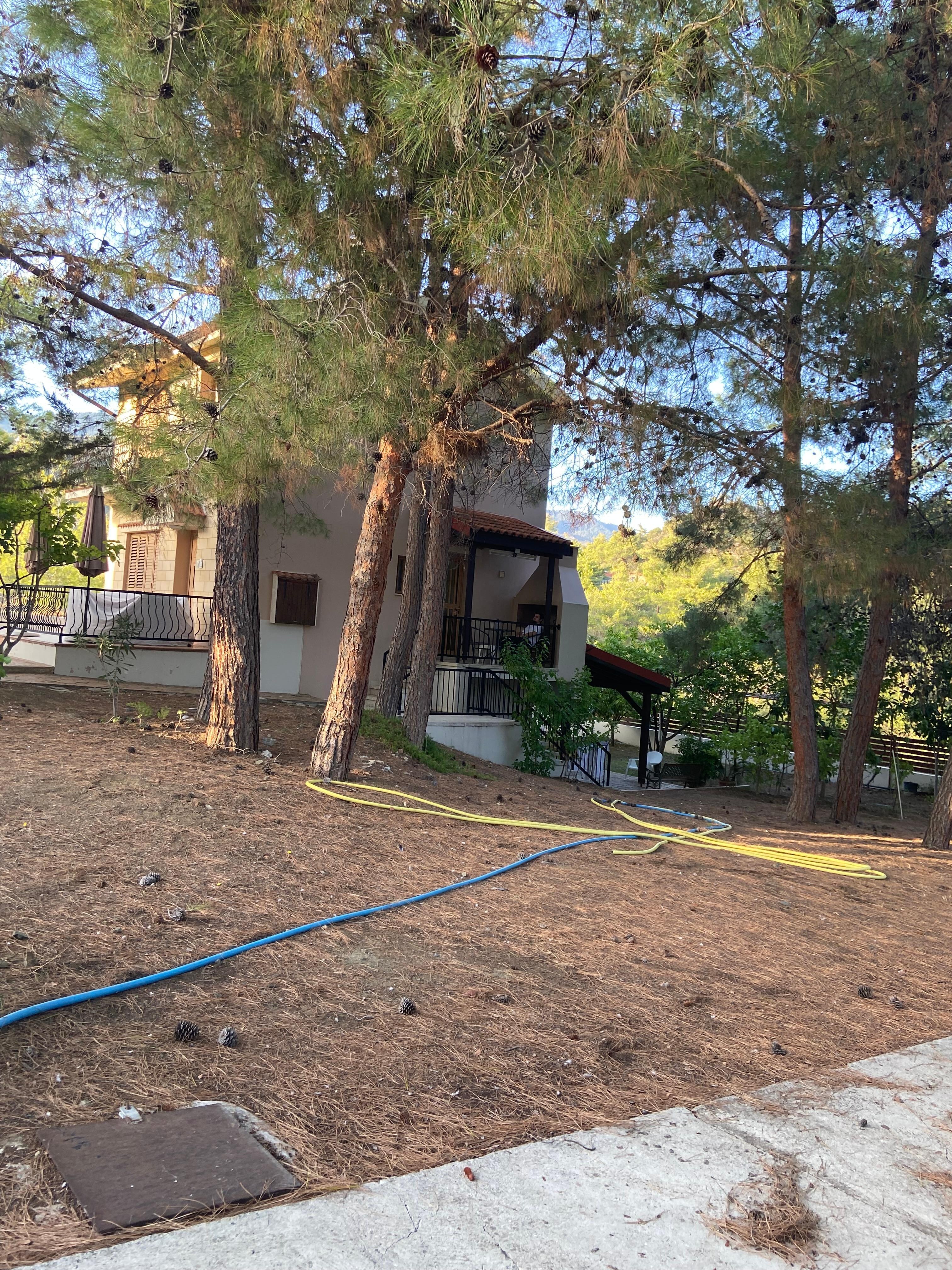 Nydelig landsted i Trimiklini omgitt av vakre furutrær. Området er veldig stille med begrensede omkringliggende hus, slik at du kan slappe av fredelig. Ideelt sted for en stor familie eller for en stor gruppe mennesker som vil flykte til et vakkert landskap. Også gratis WIFI og luftkondisjonerte hovedområder!