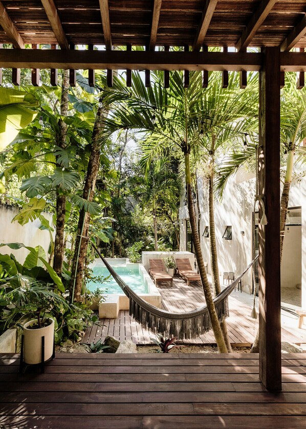 This is the perfect place for your Tulum retreat. 5 Bedrooms each with its own ensuite bathroom. Plenty of terrace space to lounge by the pool, read a book in a hammock or large open rooftop perfect for yoga. Great location just 2 minutes from the road leading directly to the beach. Our guests receive access to Gitano Beach, Le Zebra, Lula and Soy Tulum. beach clubs. Dedicated concierge included with your reservation. From cenote tours to yoga and wellness packages this is a retreat in paradise.