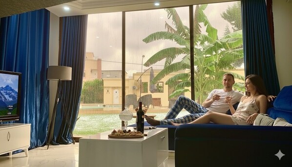 Lodging with panoramic views on the edge of a lawn garden and swimming pool
