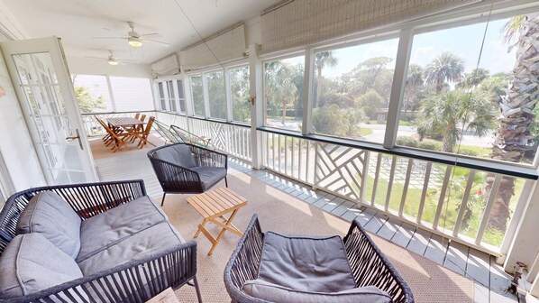 This house was big enough for all of us! Loved the screen porch along with the views from the rooftop. The walk to the beach was about 2 minutes in any direction. Would stay here again.