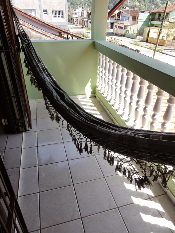 - Front soverom med dobbel boks seng, 2 enkle madrasser å legge på gulvet og balkong med hengekøye.