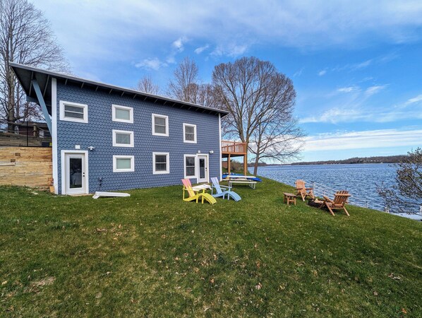 I can say without reservation that this property was beyond perfect for my family and we had an absolute blast. There are seven of us and we all existed comfortably for three nights. The upstairs/downstairs configuration was really cool, with an open kitchen to living space up-top and a game room style down-below. And to speak nothing of the decoration and attention to detail would be a crime. The place felt brand new and it was immaculate. With a well-equipped kitchen, we made dinner and ate looking out from the patio to a pristine lake vew. They had enough water toys for all of us to be out on the water at the same time. Fishing off the dock was very active, mostly small bluegill and bass. Owners were clear with instructions and attentive to our needs, which were few to none becuase the owners seemed to have thought of everything. My only warning to folks is that the backyard is steep coming down from the patio and the metal slat at the top of the dock can be slippery. Other than that, I say booking it. Worth every penny.
