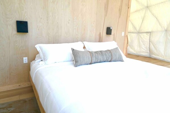 Stayed in Dome 1 for one night in mid-September while on a roadtrip from Nova Scotia to experience the 1940 book about the farm called Come Spring by Ben Ames Williams. Helpful host, easy check-in, comfortable king bed. However the photos in the description should be updated since the dome has some wear now, and to show how close the airstream trailer rental unit is to the firepit, it shares a driveway. The window curtains don't do much and we brought eyemasks in preparation. There wasn't a coffee table for the couch like in the photos. Appreciated the coffee pods in the kitchenette of the dome but all the dishes needed a good cleaning as well as the mini fridge. Keep in mind the stars are incredible at night but there are no outdoor lights, not even going up the eleven stairs to the dome. There isn't a single hook in the place for towels or coats; and no where to put luggage- a luggage stand, coat-rack, and boot tray in the entry would be nice, as well as a broom for guests to corral the grass and dirt from the farm, especially coming up the stairs onto the deck. That said, we loved the farm. Gorgeous setting, friendly animals, the Coop Lounge was so cool, definitely an experience reminiscent of the books descriptions.