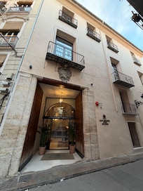 The location is perfect. Just a few minutes walk to all the major sites like the cathedral and Lonja de Seda. The room was immaculately clean and quite spacious, especially for a boutique hotel. The bed was quite comfortable. The bathroom was very clean, and I loved the rainfall shower with constantly hot water. My only complaint was that we had a street facing room, so it was quite noisy throughout the night. I had to wear earplugs to sleep. Small price to pay for all the other great things!